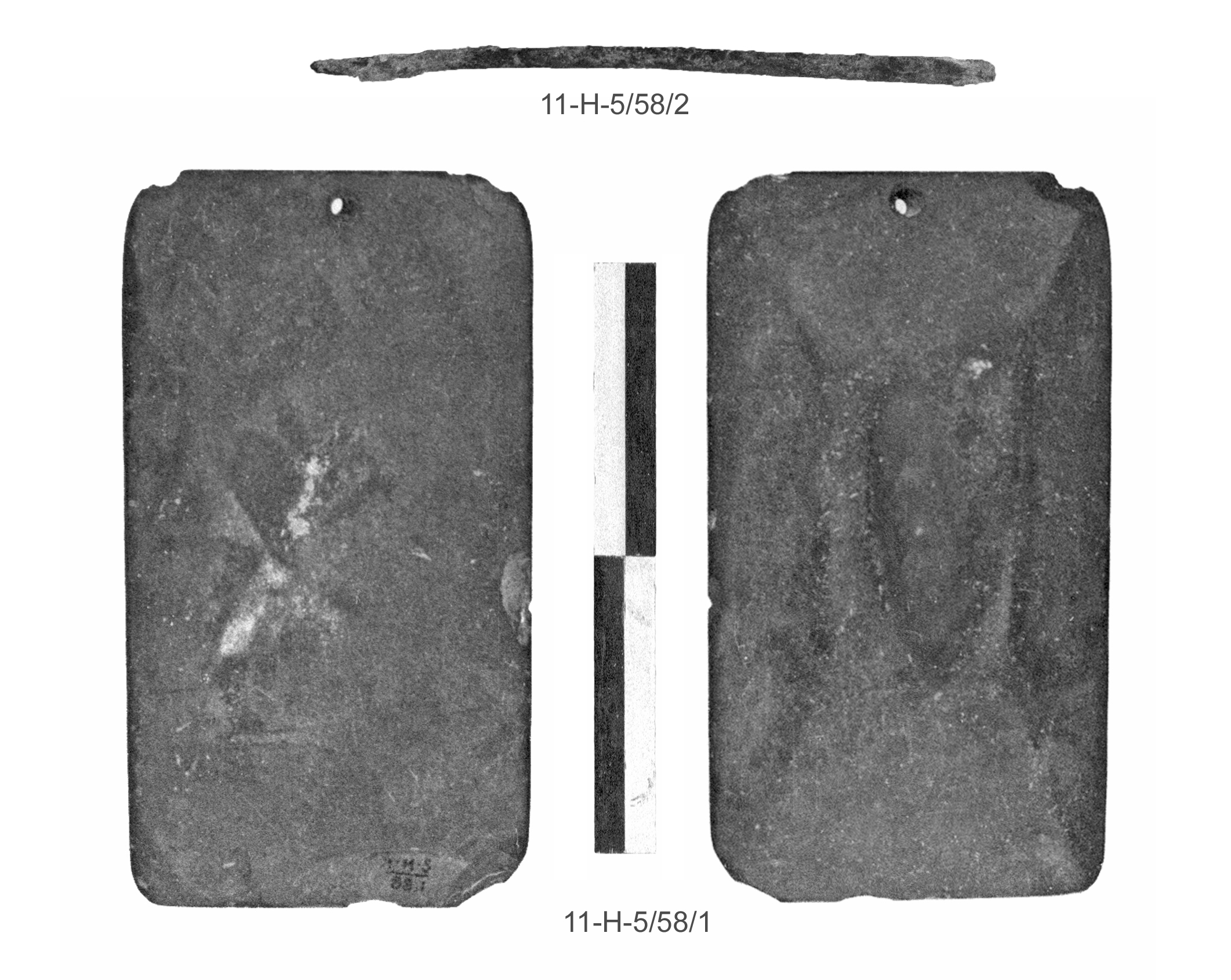 Cemetery [11-H-5] was located on a small rise of fossil alluvium in the broad alluvial plain at the north end of Saras West, c.350m from the river bank. It was identified in January 1965. The surface was sanded over with c.25-30 cm of blown sand, littered with black boulder stones (‘black mica schist’), suggestive of circular superstructures c.2-3m in diameter. In some areas there was many small, smooth white pebbles of the type also found on graves of this period.