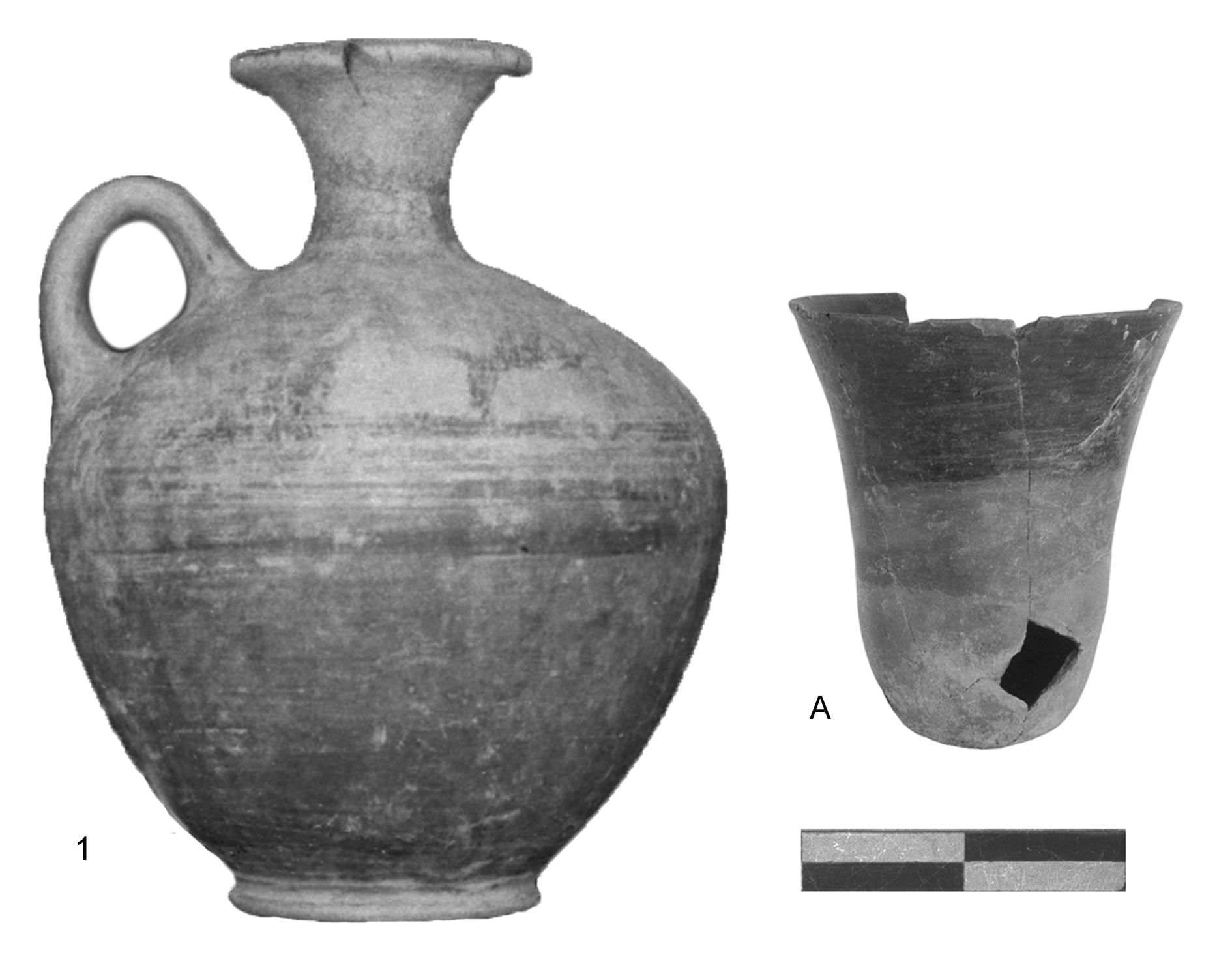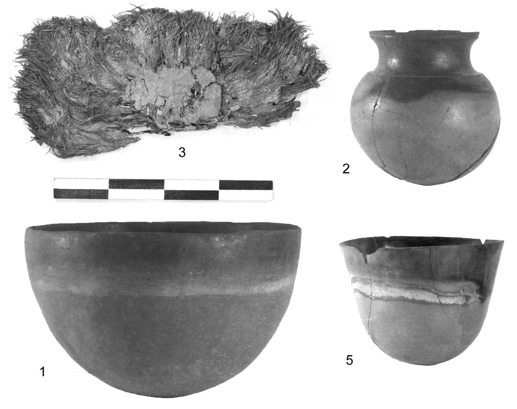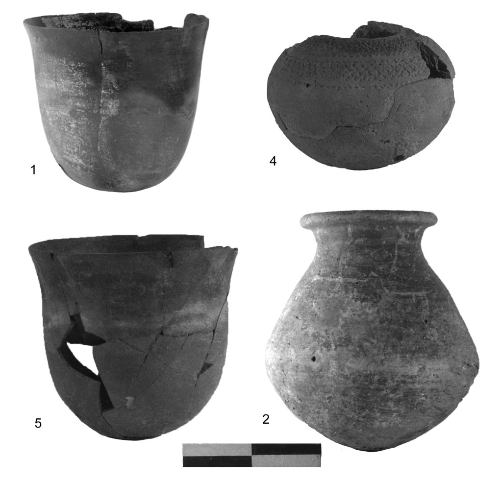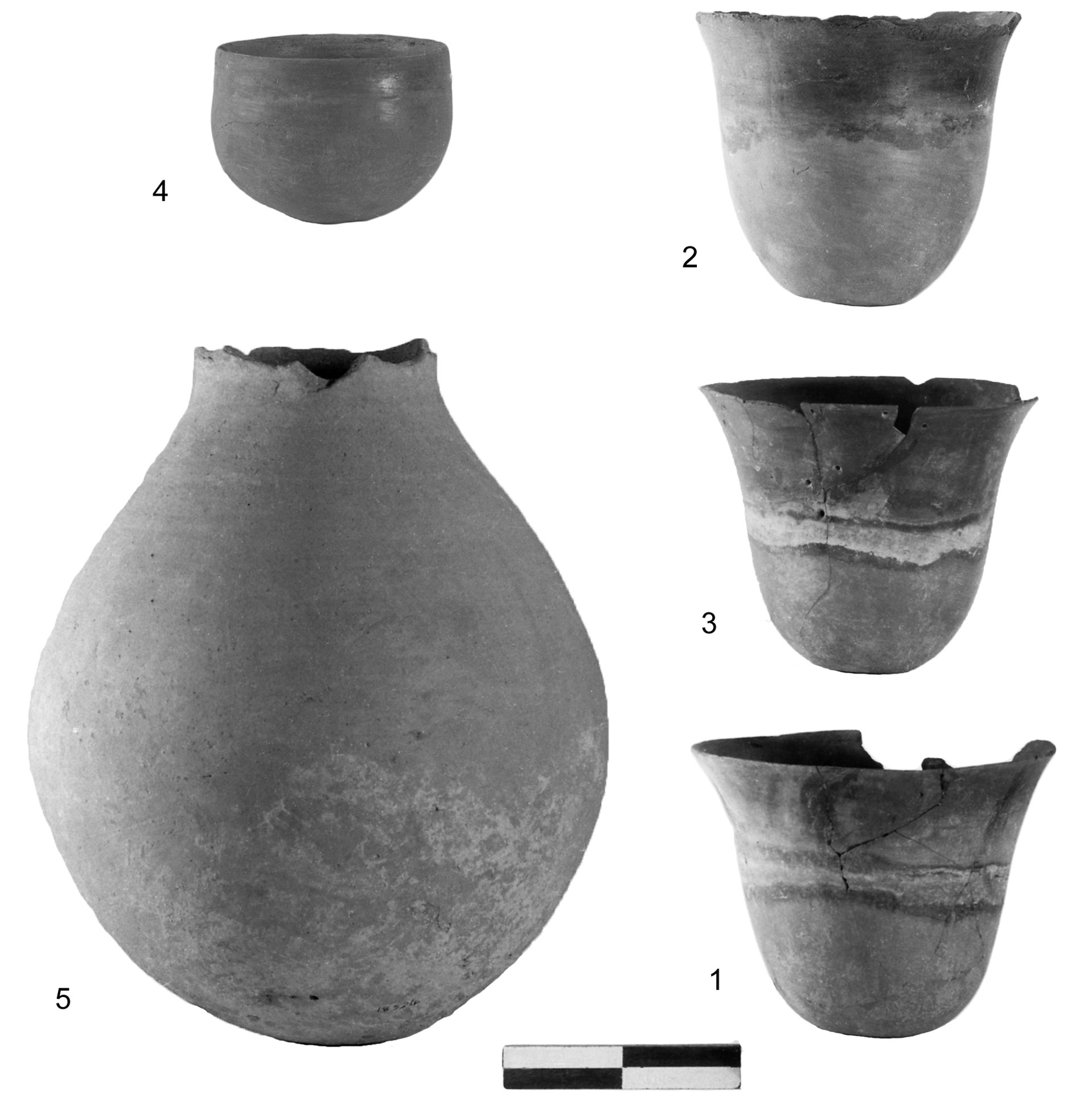 This was a large (plundered) cemetery c.600m from the river near the village of Maasho, on the edge of the Saras plain. Two areas were tested and 24 graves excavated in November 1965, providing an estimated 25% sample of the whole site which may have held c.320 graves, some identified as ‘C-Group’ and the majority as ‘Kerma’, including some typical Classic Kerma burials with bed burials. A preliminary note on the site was published in Kush (Mills 1973: 203-205). Some of the groups of more complete pots and some other finds recovered from different graves are illustrated below.