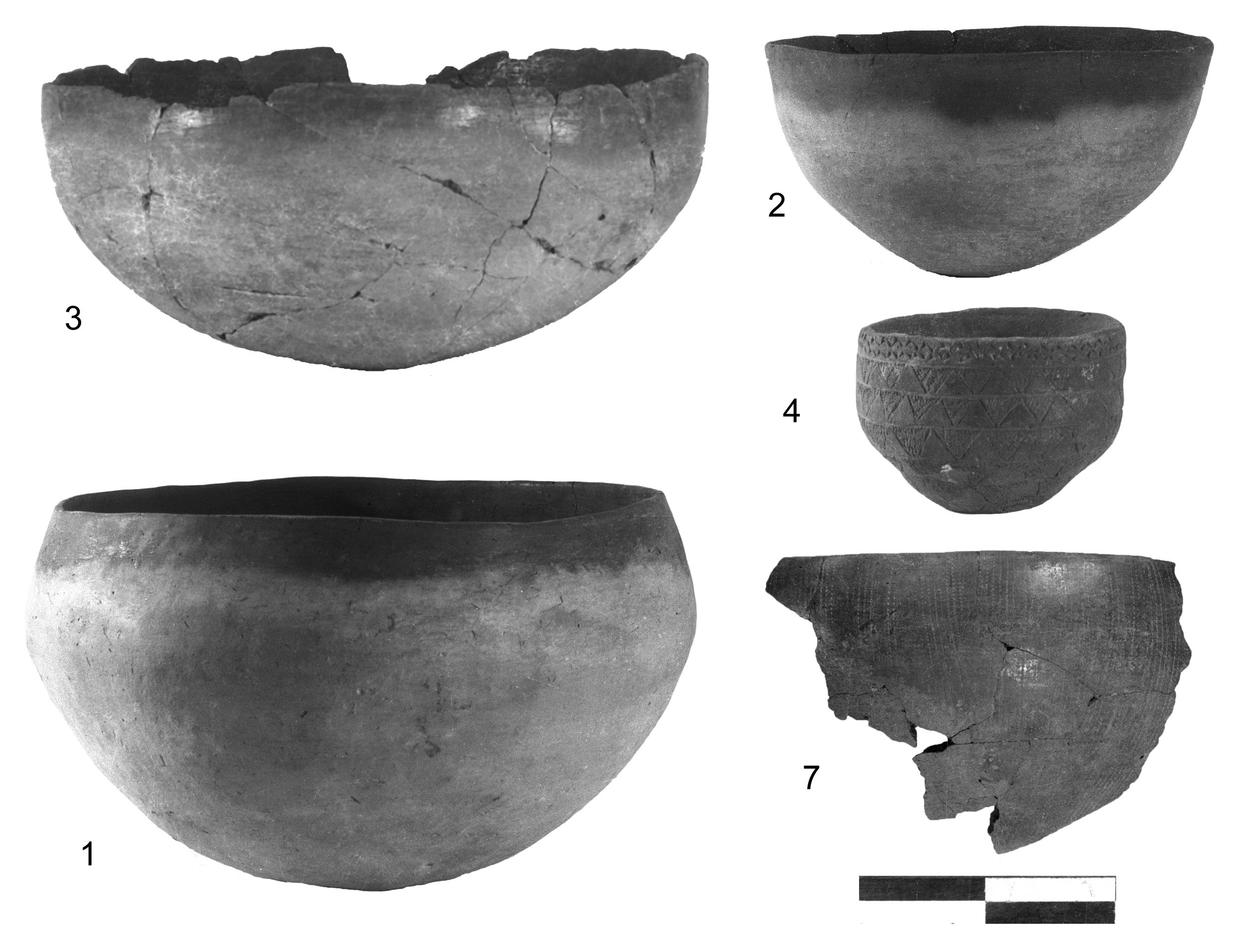 These and other concentrations of sherds close to graves suggested such surface deposits were quite common. The stone superstructures were mostly completely destroyed but in a few cases some traces remained. Field notes recorded that the most characteristic pottery was bowls with “vertically radiating” decoration, along with vessels with incised decoration. The most common ware was H4.11D (associated with Early C-Group), along with H4.01A, H2.11, H1.03B, H1.01A, H1.01B, H2.01B and H2.13 as well as imported wares (W3.01= ‘hard pink unpolished’ and W5.01 = ‘hard unpolished Qena ware’).