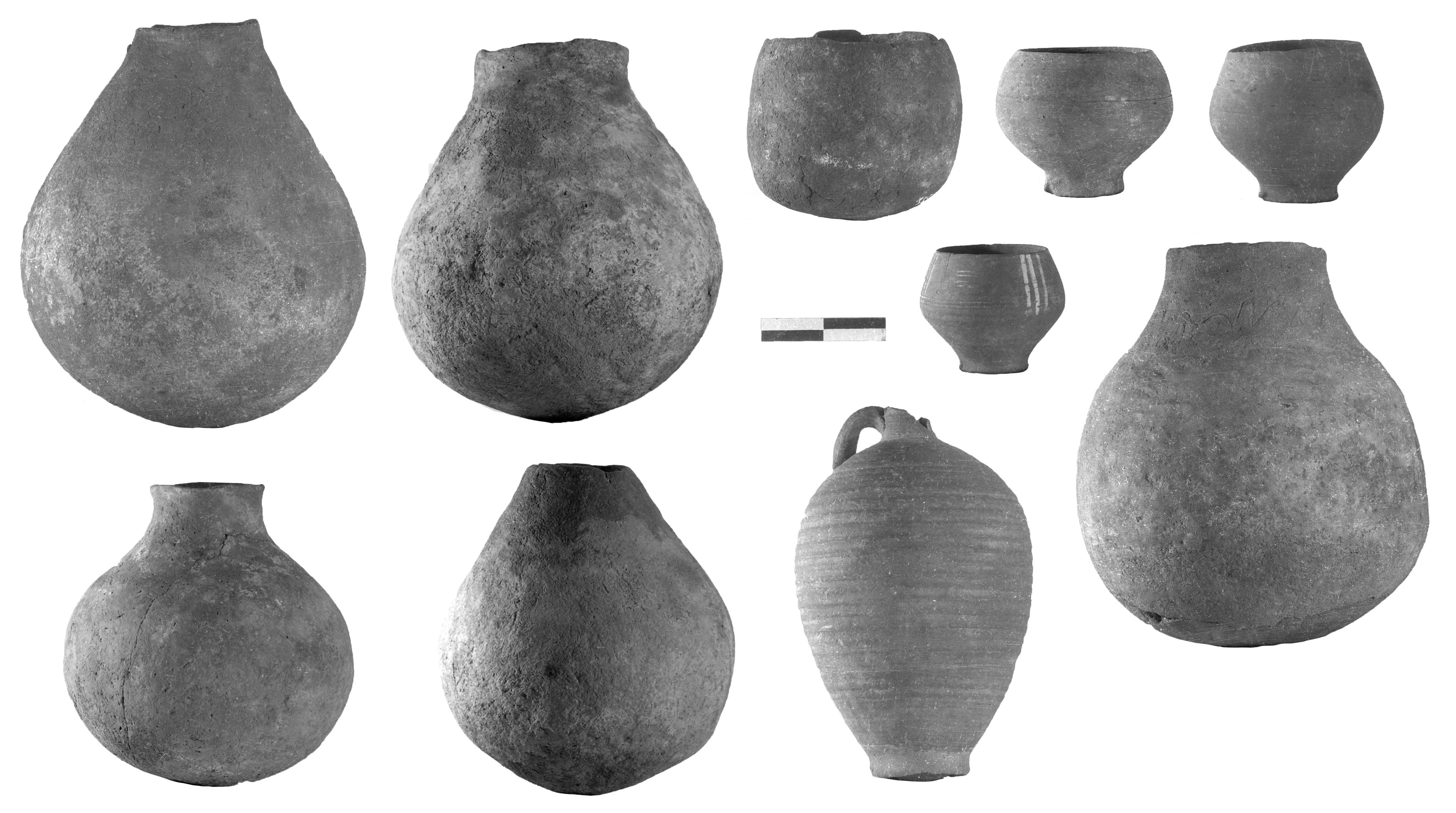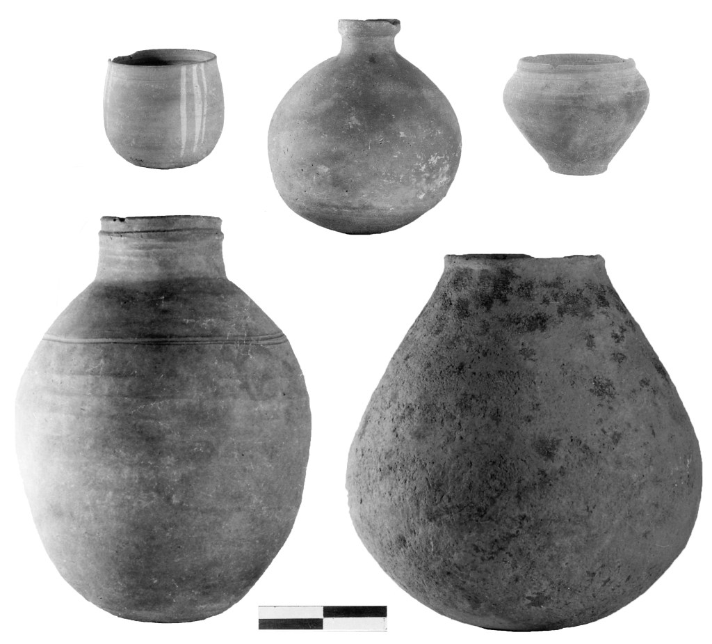 Most of the pottery used in the region is of well-known mass-produced ‘X-Group’ types. At some sites however, there are finds of more crudely manufactured handmade wares, presumably made locally. Relatively few wheelmade jars were found; at some sites most jars were handmade. This could relate to limited access to workshops producing these, while smaller vessels, such as cups and goblets, may have been more easily transported, and more widely distributed (?). The production/supply of such vessels may also have been variable through time; some larger types of wheelmade jars types, for example, may have only been produced quite late in the post-Meroitic period. Before that, these may have been made locally.